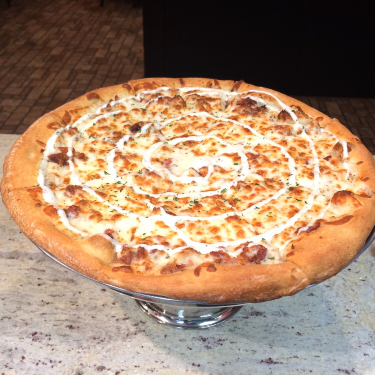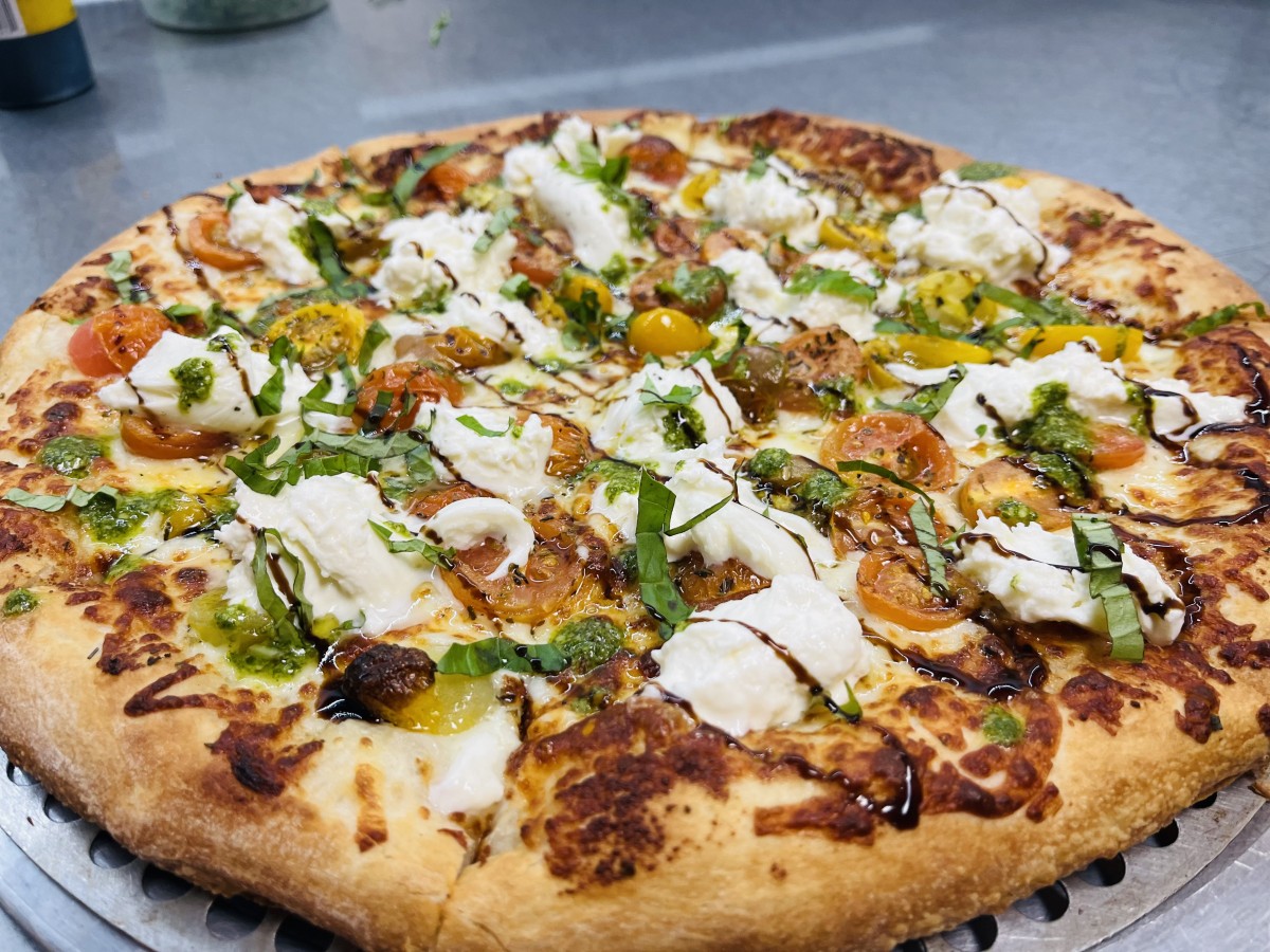 Small $14.99Large $23.99Extra Large $25.9914 in. G.F. $26.74White garlic & oil base with mozzarella, paired with cherry tomatoes, pesto, fresh basil, burrata cheese and a hint of balsamic glaze.Meat Cravers